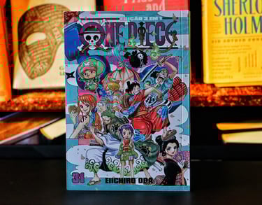 You can't miss One Piece's Straw Hat logo on manga comic book "Eiichiro Oda".