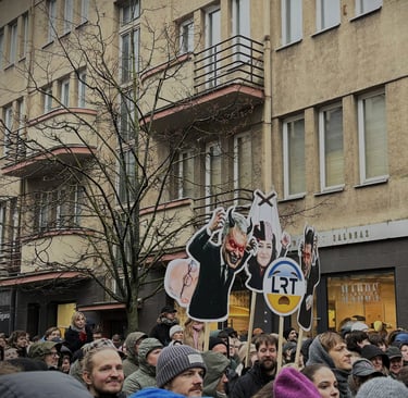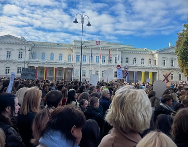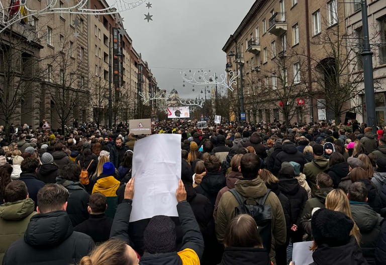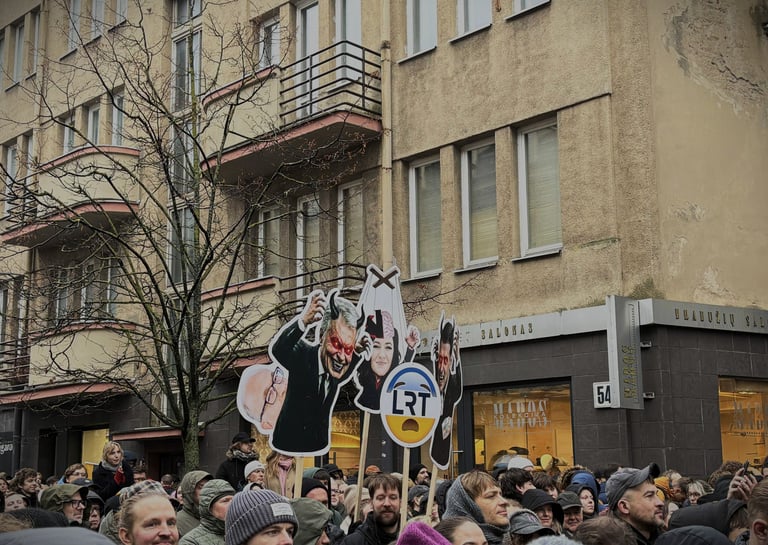 That broader pattern became even clearer in early December, when concerns over media freedom sparked another mass protest. This time drawing an estimated 10,000 people to central Vilnius. The demonstration, held outside the Parliament and the Martynas Mažvydas National Library, was organized in response to proposed amendments to the Lithuanian National Radio and Television (LRT) Law.